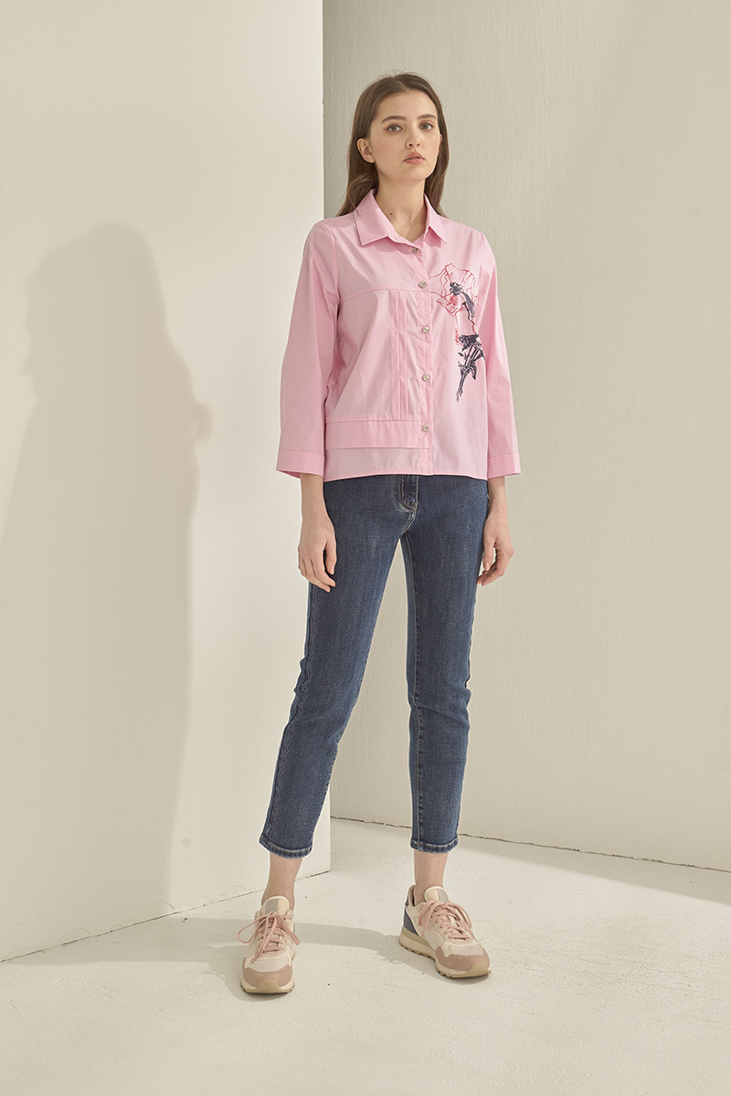 結構拼接造型印花襯衫