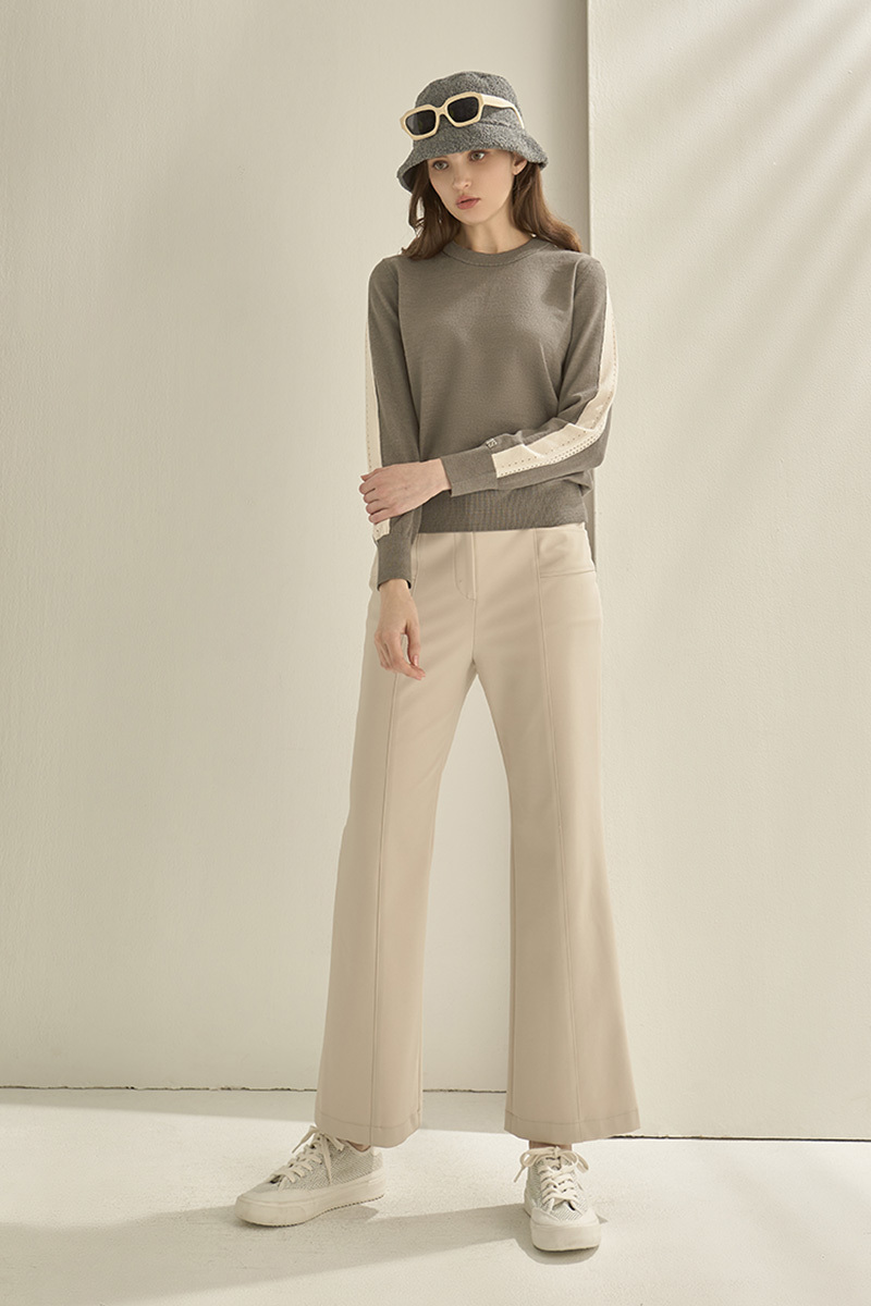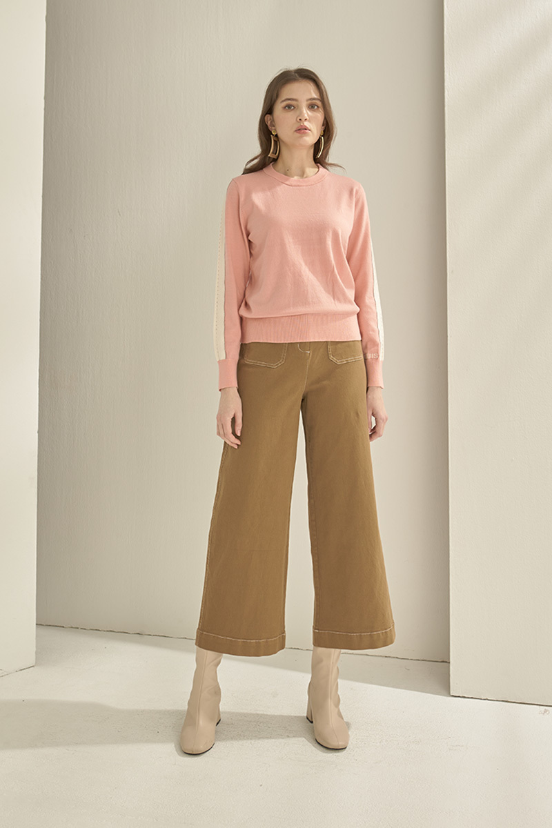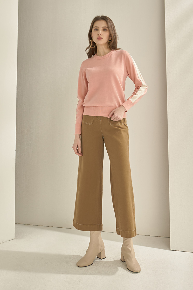 挑孔鍊條細節袖針織上衣