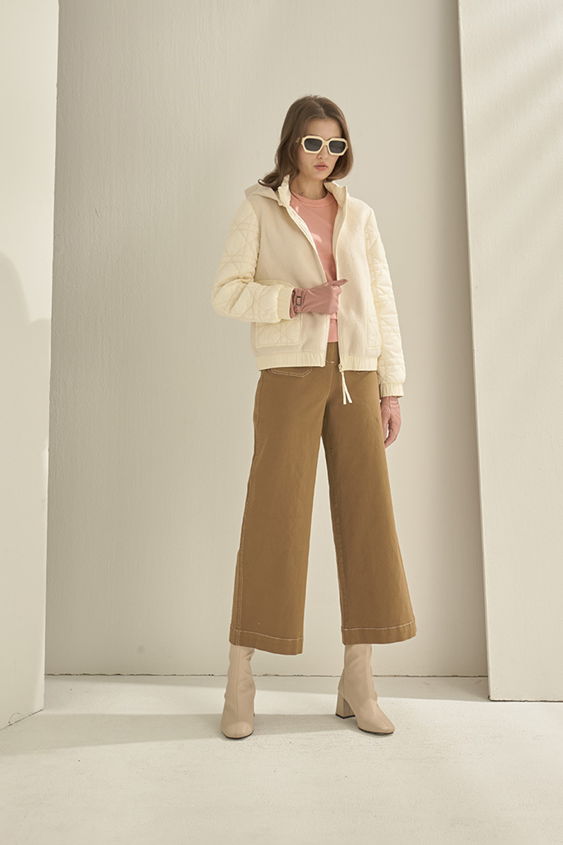 鋪棉異素材拼接連帽外套