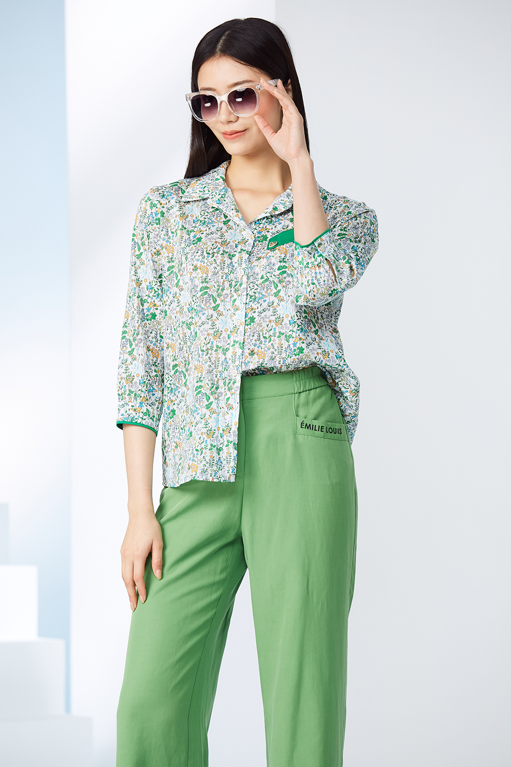 草本系列花卉印花,寬鬆修身版型開襟襯衫。
