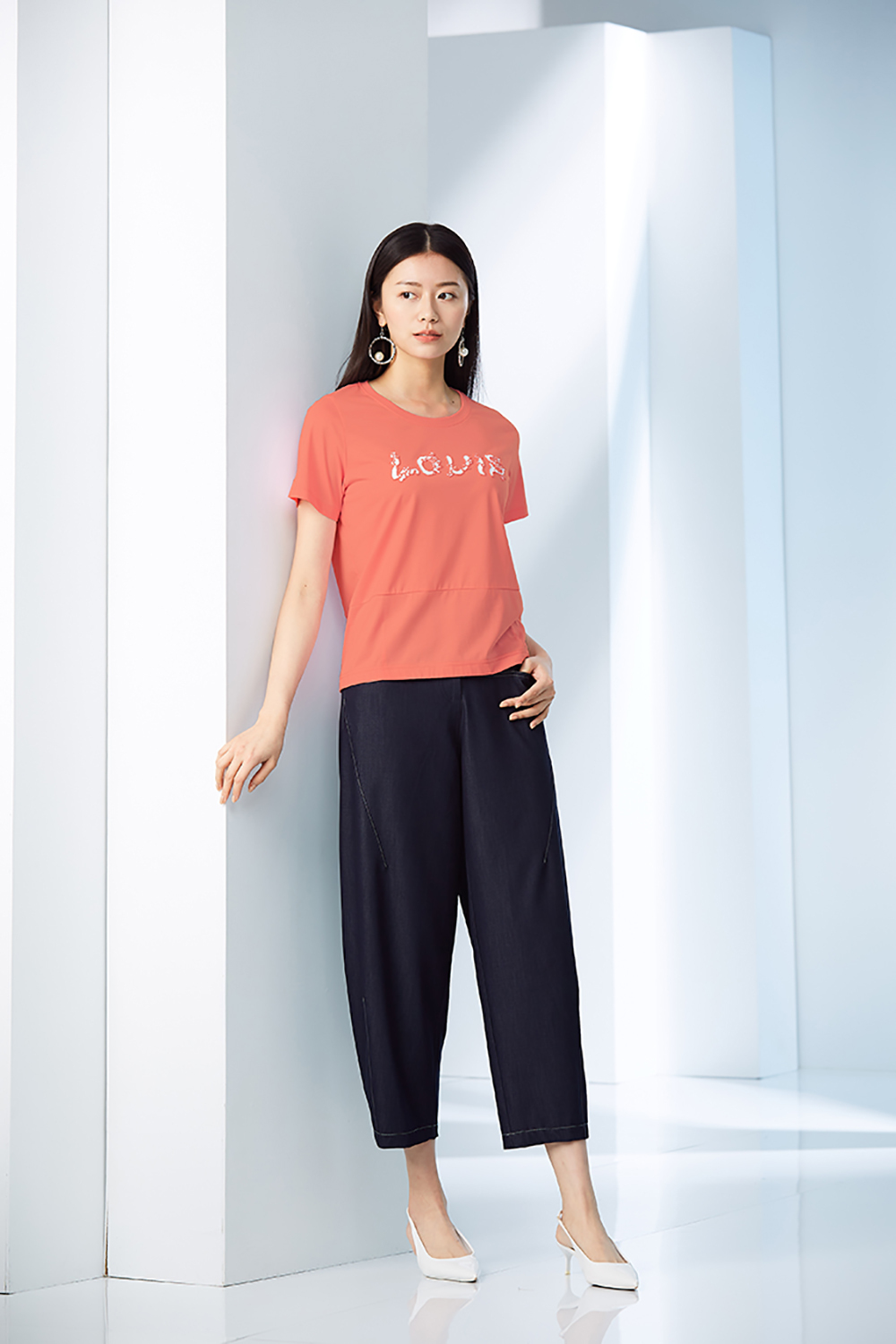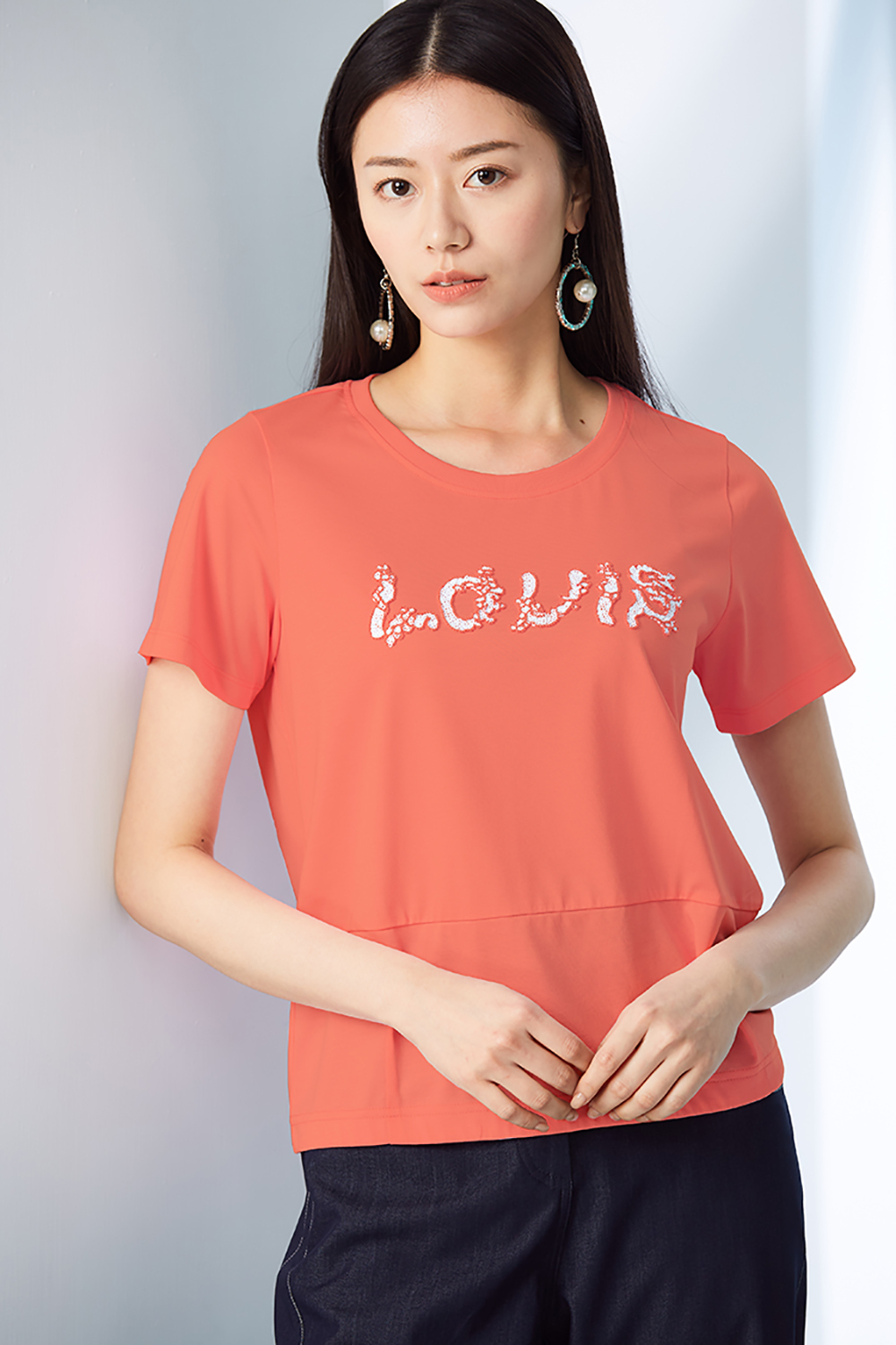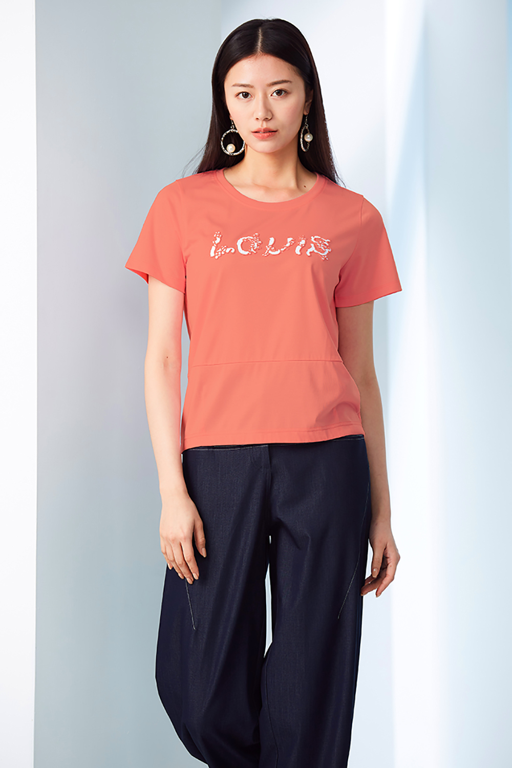 文字手縫裝飾棉質上衣。