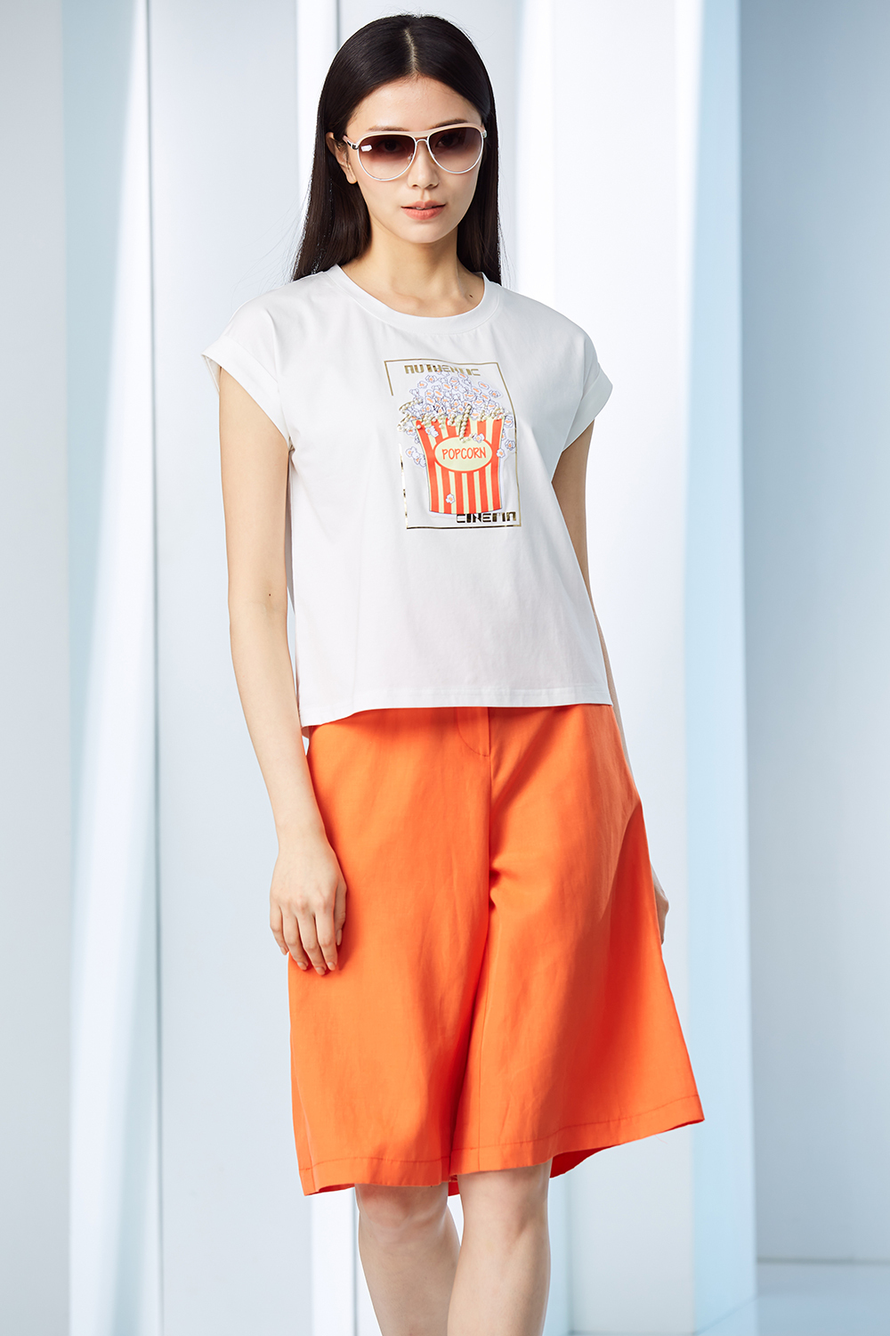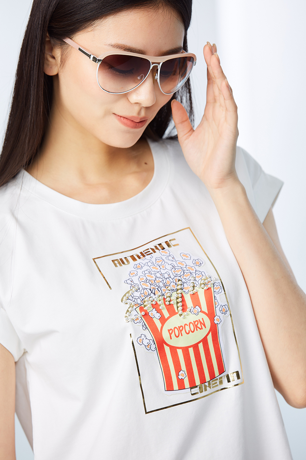 爆米花印花,反摺袖口連袖上衣。