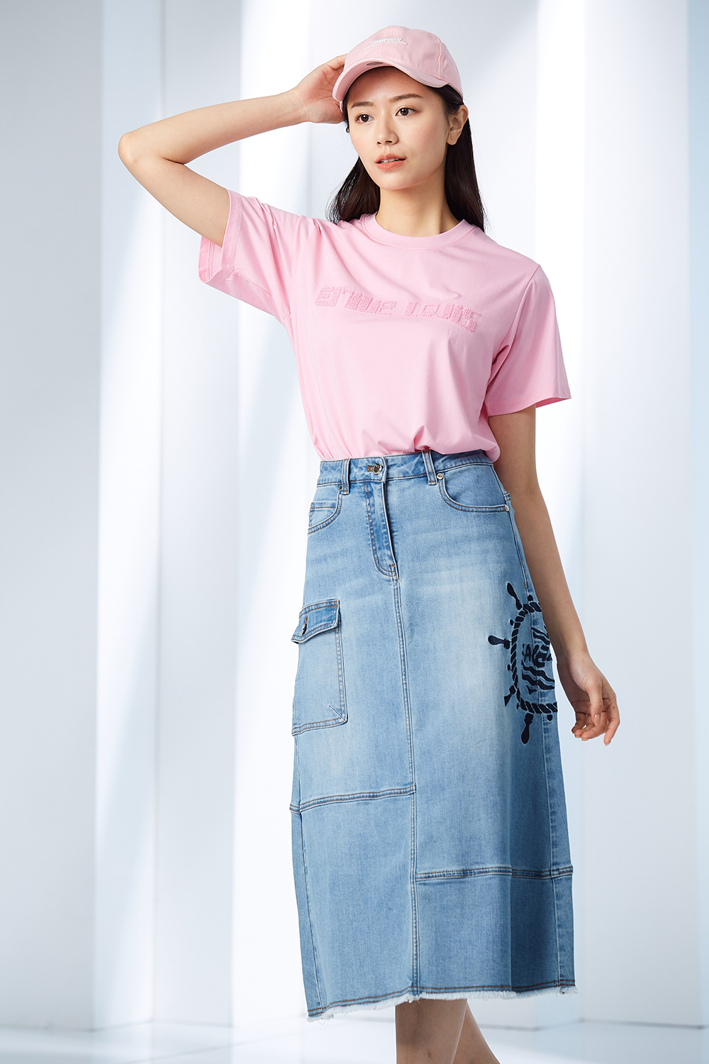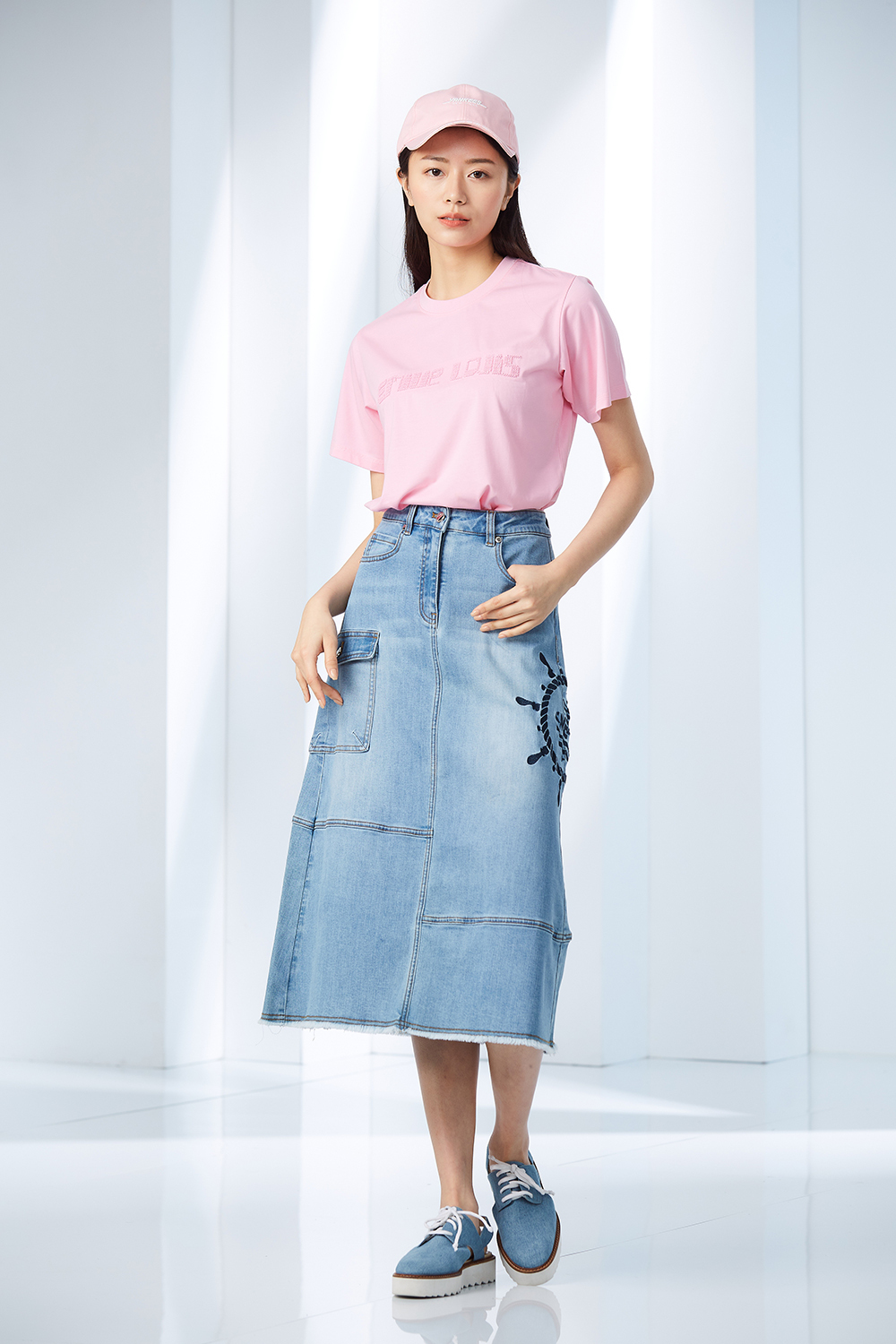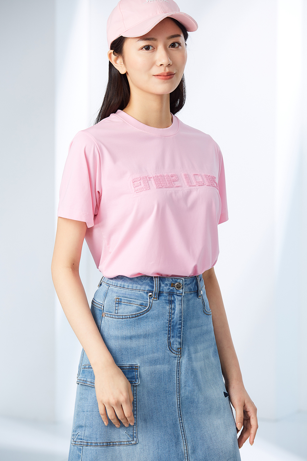 品牌字母亮片牙刷繡工藝,適合任意搭配日常棉質上衣。